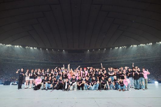 SMTOWN LIVE 2025 도쿄돔 공연에서 출연 가수들이 단체 사진을 촬영하고 있다. [사진=SM엔터테인먼트] |