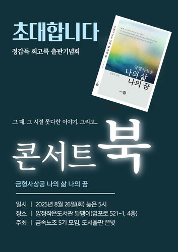 11일 정갑득 북콘서트 추진위원회에 따르면 '금형사상공 나의 삶 나의 꿈'이라는 제목의 이번 회고록은 그가 1984년 현대자동차 금형부에 입사해 노동운동에 나서게 된 과정과 경험에 대해 담았다.