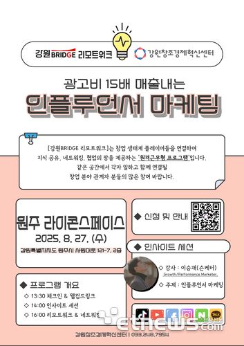 강원창조경제혁신센터(대표 이해정)는 27일 원주시 라이콘스페이스에서 열리는 창업 생태계 플레이어의 지식 교류와 협업을 위한 '2025 강원BRIDGE 리모트워크'에 참여할 참가자를 모집한다.