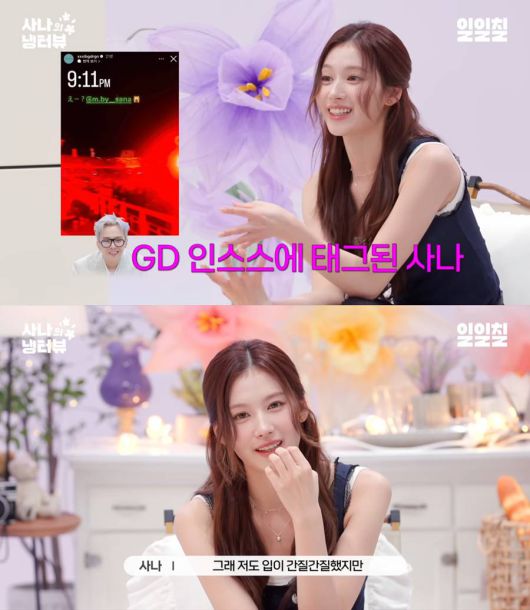 사나는 최근 유튜브 채널 '일일칠' 콘텐츠 '사나의 냉터뷰'에서 시즌2 종영 소감과 함께 지드래곤과의 열애설 해프닝을 언급해 시선을 모았다.