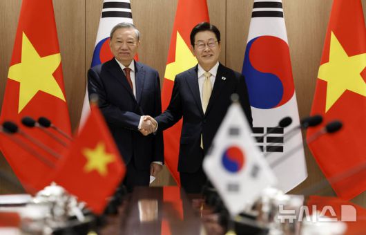 [서울=뉴시스] 김지은 기자 = 이재명 대통령은 11일 용산 대통령실에서 베트남 국가 권력 서열 1위인 또 럼 공산당 서기장과 정상회담을 하고 양국 간 협력을 미래지향적으로 발전하는 '한국-베트남 포괄적 전략 동반자 관계 심화를 위한 공동성명'을 채택했다.