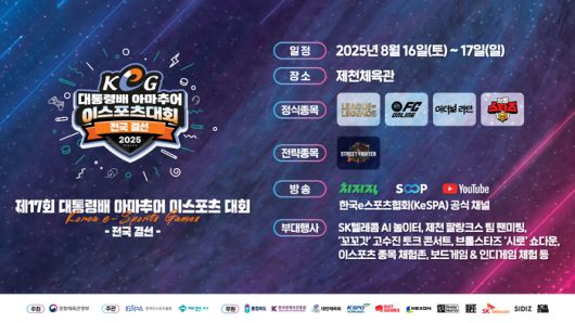 한국e스포츠협회는 “제17회 대통령배 KeG 전국 결선을 오는 8월16~17일 충북 제천에 있는 제천체육관에서 개최한다”고 밝혔다.