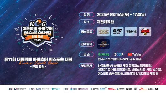 한국e스포츠협회(이하 협회)는 ‘제17회 대통령배 아마추어 이스포츠 대회’(이하 대통령배 KeG) 전국 결선이 오는 8월 16일(토), 17일(일) 양일간 충북 제천에 위치한 제천체육관에서 개최된다고 11일(월) 밝혔다.