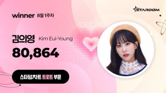 김의영은 8월 1주차(집계기간 8월 4일~8월 10일) '스타덤 차트' 트로트 부문 주간랭킹에서 1위를 차지했다. 7월 2주차 1위에 오른 후 5주 연속 정상 등극이다.