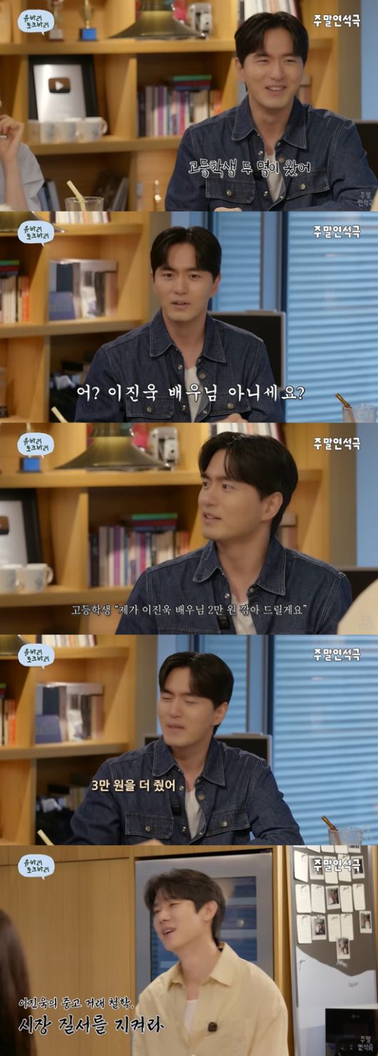 이진욱은 "3만원이 아까운 게 아니다. 다만 상도덕이라는 게 있지 않나. 어머니가 '다 힘들게 사니 물건값은 깎지 말라'라고 했다. 이것도 이거지만 시세보다 높은 가격에 사는 건 시장 질서를 흐리게 하는 거 아닌가. 이것도 안 좋기 때문에 그 다음부터는 가리고 간다"고 밝혔다.