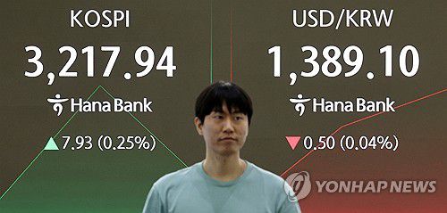 코스피는 전일보다 3.24포인트(0.10%) 내린 3,206.77로 장을 마쳤다. 외국인은 이날 유가증권시장에서 약 2천169억원을 순매수했다.