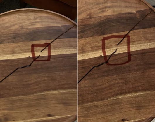 A씨는 호스트가 에어비앤비 측에 제출한 증거 사진을 살펴보던 중 커피 테이블에 금이 간 부분이 서로 다르다는 점을 발견했다. 가디언이 공개한 두 장의 사진을 보면 같은 커피 테이블 사진인데 균열 부분이 미세하게 다른 것을 볼 수 있다. A씨는 해당 사진이 AI로 조작한 것이라고 보고, 자신이 조기 퇴실한 데 대한 호스트의 보복 조치라고 판단했다.