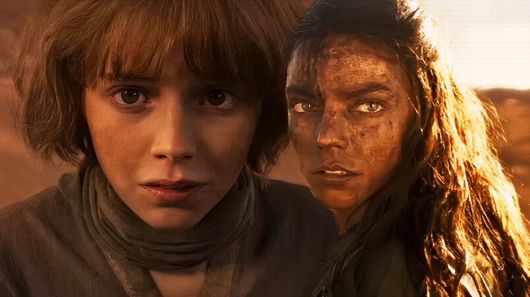 영화 '퓨리오사:매드맥스 사가'에서 애니아 테일러조이(오른쪽)와 아일라 브라운이 각각 성인과 어린 퓨리오사를 맡아, AI 기반 페이스 블렌딩 기술로 두 배우의 얼굴을 점진적으로 합성해 자연스러운 연령 전환을 연출했다. 초반엔 테일러조이 얼굴의 비율이 35% 정도였으며, 성인이 되는 시점엔 80%까지 높아졌다. 워너브러더스 |