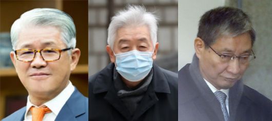 왼쪽부터 최신원 전 SK네트웍스 회장, 최지성 전 삼성그룹 미래전략실장, 장충기 전 미래전략실 차장. 뉴시스 |