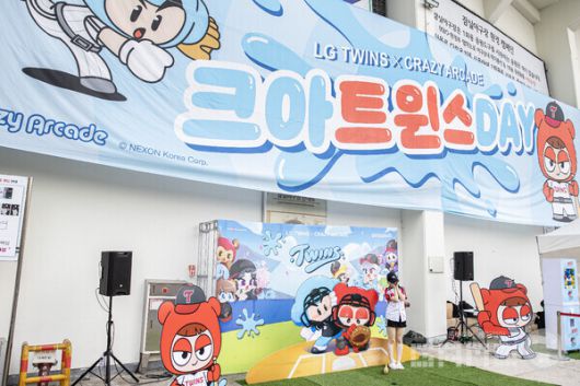 잠실야구장 외곽에는 포수로 변신한 '크레이지 아케이드'의 인기 캐릭터 '다오'와 '배찌'가 그려진 대형 포토존이 마련돼 관람객들을 맞이했다. 가족, 친구, 연인 등 다양한 관람객들이 타격 자세를 취한 채 사진을 찍으며 즐거운 추억을 남긴 한편, '다오', '배찌' 인형탈이 경기장 곳곳을 누비며 깜짝 포토타임을 선사해 현장의 열기를 더했다.