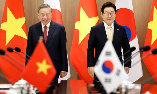 이재명 대통령은 11일 취임 후 첫 외빈인 또 럼 베트남 당서기장을 최고예우로 맞이했다. 국빈 만찬에는 정부 인사들뿐 아니라 재계 총수들까지 총출동해 양국 간 경제 협력 강화 의지를 부각했다.