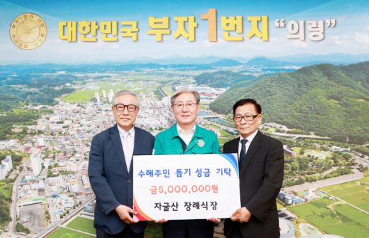 자굴산장례식장(이사 전영수)에서 지난달 수해로 큰 피해를 본 주민들에게 써달라며 성금 500만원을 기탁했다.