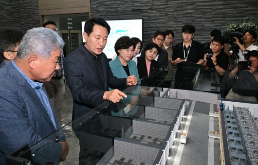 오세훈 서울시장이 11일 서울추모공원에 증설된 화장로에서 운행중인 자율주행로봇(AMR) 시운전 과정을 점검하고 있다. |