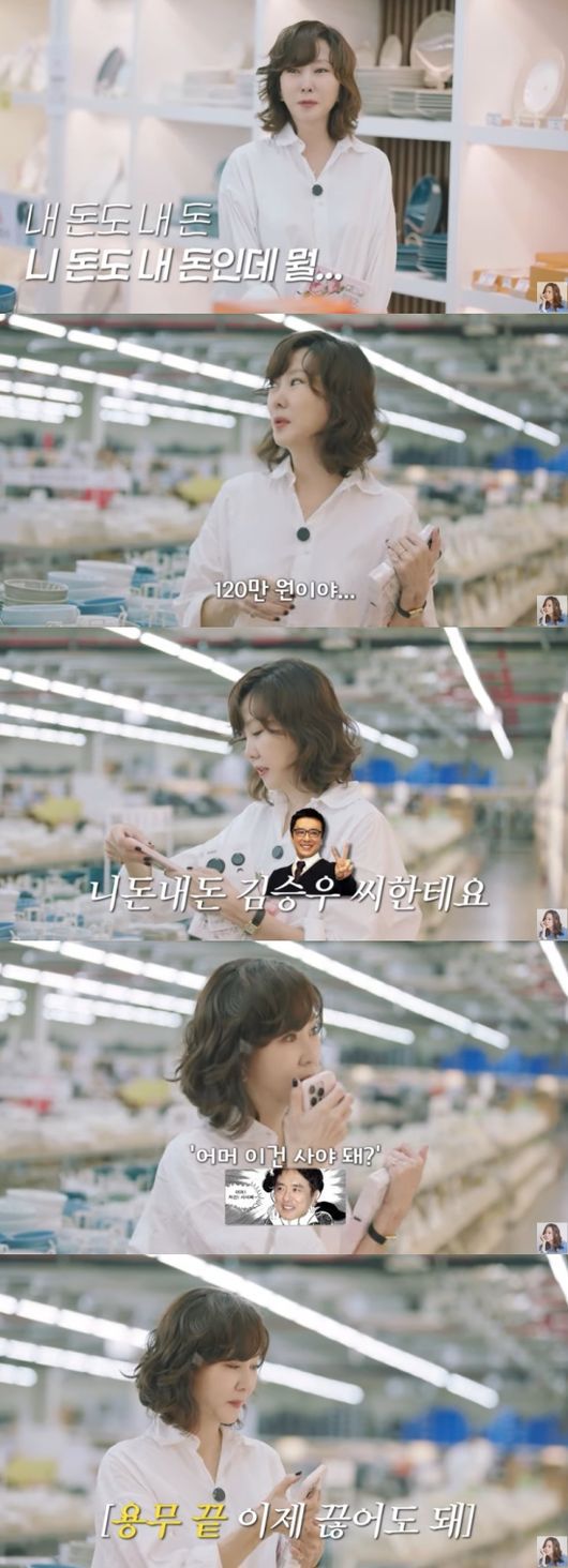 김남주는 “오빠, 여기 그릇을 보러 왔는데 접시가 너무 예쁘다. 어머 이건 사야 돼. 너무 예쁜데 너무 비싸다”라고 은근슬쩍 말을 꺼냈고, 김승우는 “끊어”라며 단박에 전화를 끊었다.