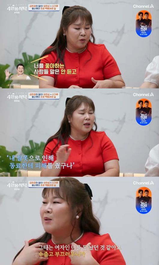 11일 방송된 채널A '절친 토큐멘터리 – 4인용식탁'(이하 '4인용식탁') 100회에는 코미디언 김민경이 출연해 100kg이 넘는 절친 유민상, 신기루를 초대해 뷔페를 즐겼다.