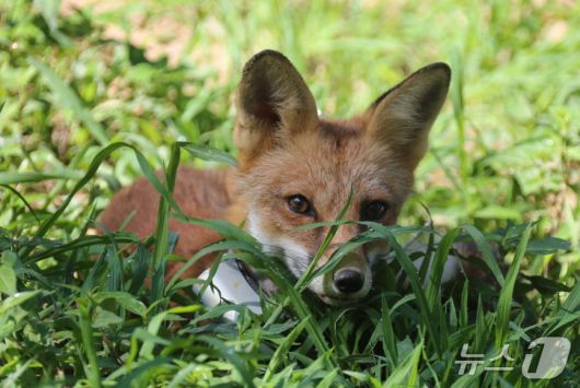 붉은여우 목에 GPS가 걸려있다. 여우의 행동 반경을 연구해 복원 사업을 위한 데이터를 수집한다.(국립공원공단 제공. 재판매 및 DB 금지)2025.8.12/뉴스1 |