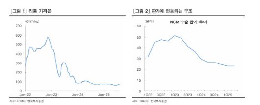 리튬 가격 반등은 국내 양극재 업체들의 실적에 긍정적으로 작용한다. 판매 단가 인상과 재고자산평가손익 개선을 통해 매출과 수익성이 동반 상승할 수 있기 때문이다. 김 연구원은 “중국 광산의 잇따른 생산 중단은 리튬 가격 추가 하락 가능성을 낮추고, 상승 시 셀·자동차 업체들의 선구매 수요를 유도할 수 있다”고 밝혔다.