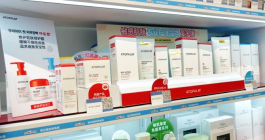 중국 룽마트 매대에 진열된 아토팜 제품. (사진=네오팜) |