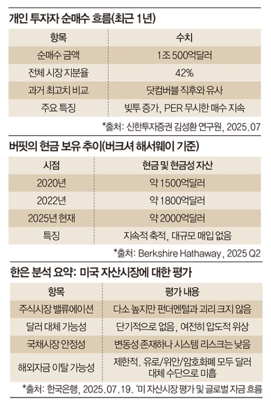 실제로 1929년 대공황, 2000년 닷컴 붕괴, 그리고 2021년 팬데믹 직후에도 신용거래와 개인의 매수세가 과열 구간에서 정점을 찍은 바 있다. “개인 투자자는 상승세에 한 번 올라타면 긴축 신호나 고밸류에도 개의치 않고 매수를 지속하는 경향이 강하다”고 그는 덧붙였다.