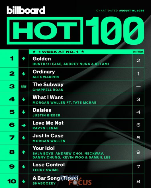빌보드 핫 100 차트 Top 10 내에는 케이팝 데몬 헌터스의 또 다른 수록곡이자 극 중 헌트릭스의 라이벌로 등장하는 ‘사자보이즈’의 ‘Your Idol’ 또한 꾸준히 사랑을 받고 있는 것으로 나타났다.