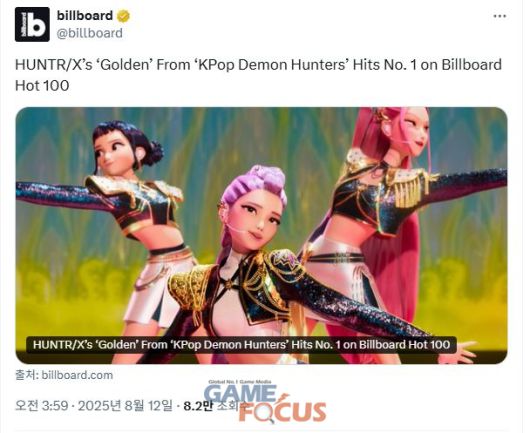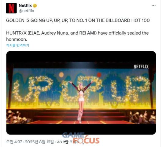 빌보드의 이번 순위 발표 이후 케이팝 데몬 헌터스를 서비스 중인 넷플릭스는 공식 X(트위터)를 통해 Golden의 빌보드 핫 100 1위 소식과 함께 헌트릭스가 혼문을 세웠다고 전해 눈길을 끌었다.