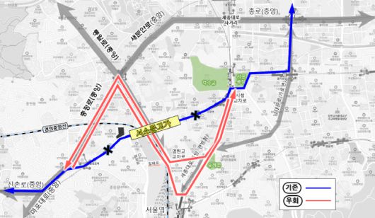 172번, 472번 등 기존에 서소문고가를 왕복으로 통과하던 5개 노선은 충정로~통일로~세종대로 등을 경유하는 경로로 우회하며 600번, 602번 등 서소문고가를 편도로 통과하던 2개 노선은 세종대로~통일로~충정로를 이용해 우회한다.