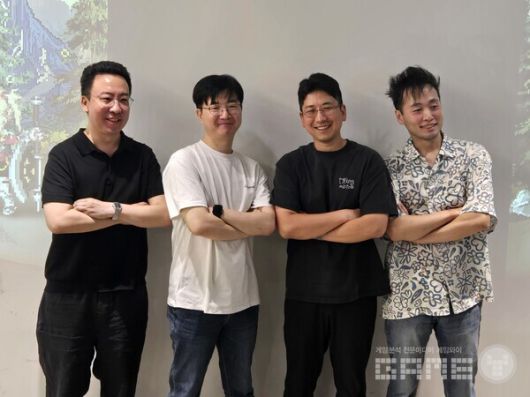 (왼쪽부터) 이정환 시스템 디렉터, 최진성 PD, 배정현 대표, 정태룡 콘텐츠 디렉터 / 게임와이 촬영 |