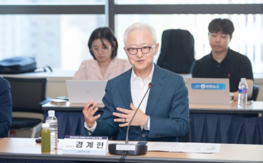 12일 오전 서울 종로구 광화문교보빌딩 국가과학기술자문회의 대회의실에서 열린 '민관합동 과학기술인재 유출방지 및 유치 TF 착수회의' 에서 경계현 삼성전자 고문(공동위원장)이 발언하고 있다. /사진=과학기술정보통신부 |