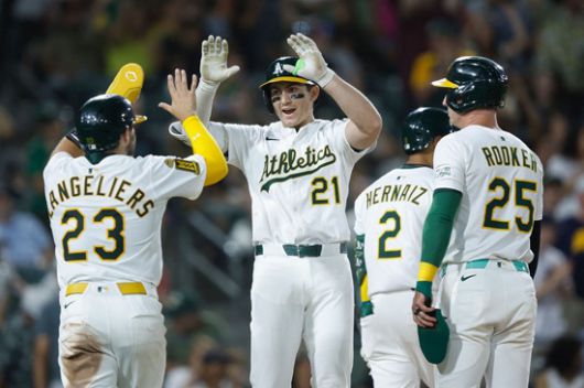 애슬레틱스도 곧바로 추격에 나섰다. 7회말 선두타자 추커와 랭겔리어스의 안타로 만들어진 1사 1, 2루에서 소더스트롬이 중월 스리런포를 터트렸다. 추격을 허용한 페피오는 마운드를 내려갔고, 공을 이어받은 그리핀 잭스가 후속타자 에르나이즈와 블러데이를 땅볼로 정리하고 이닝을 마쳤다.