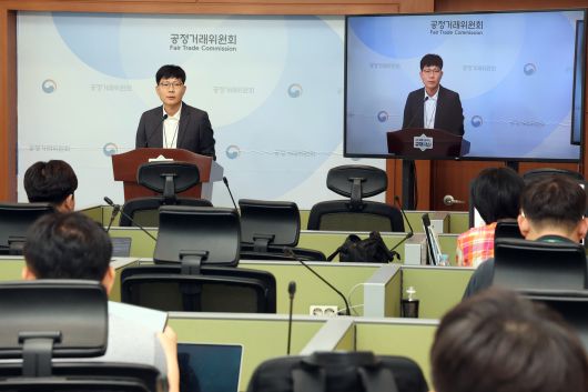 공정거래위원회 박정웅 제조업감시과장이 12일 정부세종청사 공정위 기자실에서 입주업체(모텔)가 비용 부담한 할인쿠폰 중 미사용분에 대해 야놀자, 여기어때 등 플랫폼 사업자가 임의로 소멸시킨 행위에 대해 시정명령 및 과징금을 부과하기로 결정했다고 밝히고 있다. [연합] |