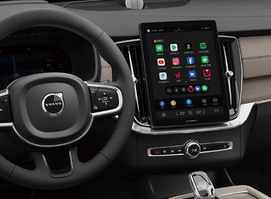 실내는 좀 더 고급스러워졌다. 수평적인 형태의 대시보드에는 세로형 송풍구가 새롭게 디자인됐고, 100% 재활용 폴리에스터를 사용한 텍스타일과 질감을 강조하는 우드 데코가 사용됐다. 볼보 측이 강조한 가장 큰 변화는 한국 시장을 위해 티맵 모빌리티와 개발한 커넥티비티다. Volvo Car UX가 새롭게 탑재돼 더 많은 정보를 안전하게 직관적으로 확인할 수 있다는데 이 모든 걸 11.2인치 독립형 센터 디스플레이로 경험할 수 있다. 평균 96% 이상의 한국어 인식률을 자랑하는 자동차 전용 AI 플랫폼 ‘누구 오토(NUGU Auto)’, 다양한 써드파티 앱을 지원하는 티맵 스토어, 수입차 최초로 네이버의 차량용 ‘웨일(Whale)’ 브라우저도 탑재됐다. 차 안에 태블릿 PC를 장착했다는 말이 나오는 이유다.