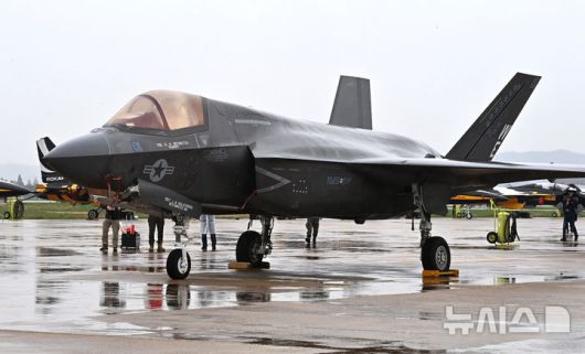 [평택=뉴시스] 김종택 기자 = 2025 오산 에어파워데이 미디어데이 행사가 열린 지난 5월 9일 경기 평택시 주한미군 오산공군기지에 미국의 5세대 스텔스 전투기 F-35B가 전시돼 있다. 2025.05.09. jtk@newsis.com |