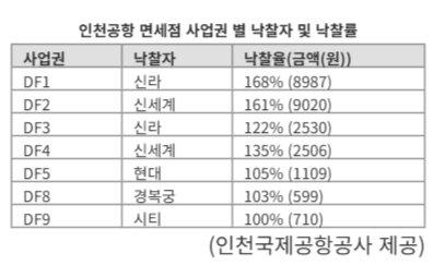 실제로 DF5 구역을 운영 중인 현대면세점은 올해 2·4분기 매출이 전년 동기 대비 22% 증가한 2935억원을 기록했다. 현대면세점은 입찰 당시 여객 1인당 임대료로 최저수용액(1056원)보다 소폭 높은 1109원을 써냈다. 신라와 신세계의 과다 투찰이 적자로 이어졌다는 공사 주장에 힘이 실리는 부분이다. 신라와 신세계도 최저수용금액 대비 투찰률이 각각 122·135%로 알려진 패션·부티크(DF3·4) 사업권에 대해서는 임대료 조정을 신청하지 않았다.