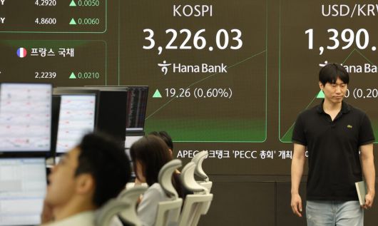 12일 서울 중구 하나은행 딜링룸 스크린에 코스피와 환율이 표시돼 있다. 연합뉴스 |