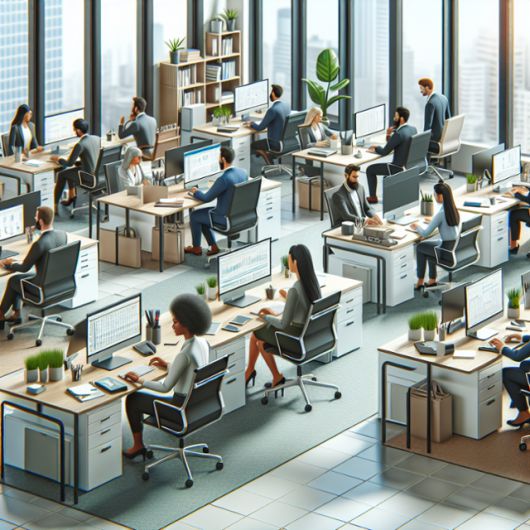 '일하는 척하기' 사무실에 모인 사람들은 앉아서 시간을 보내거나 채용 지원을 한다. 사진은 한국일보 인공지능 HAI가 그린 가상 이미지. 그래픽=달리3∙곽주은 인턴 기자 |