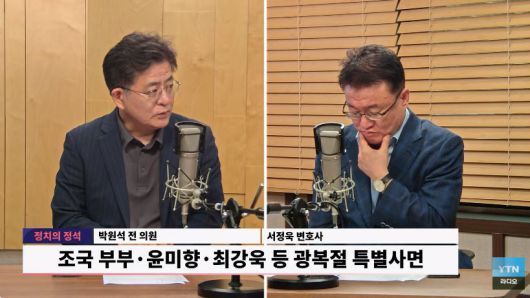 ◇이익선: 정치권 뉴스 시원하게 현안을 짚어주실 두 분과 함께 합니다. 두 분의 성함에서 한 글자씩 땄어요. 정치의 정석 서정욱 변호사, 박원석 전 의원 나오셨습니다. 어서 오십시오.