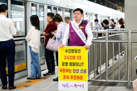 1인 시위는 강남권 이동 주민의 극심한 불편을 해소하고 수인분당선 단선전철의 조속한 추진을 바라는 구민의 열망을 담아 진행됐다.