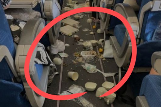 한 비행기 기내가 난기류로 인해 어질러져 있다.[X(구 트위터) 갈무리] |