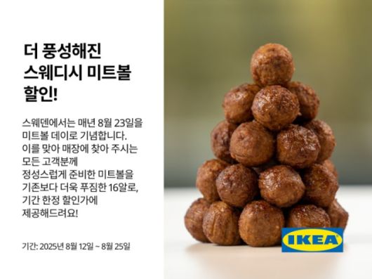 이 같은 인기에 힘입어 이케아 코리아는 오는 23일 ‘스웨덴 미트볼 데이’를 맞아 25일까지 전 매장 스웨디시 레스토랑에서 특별 미트볼 메뉴를 제공하는 행사를 진행한다고 12일 밝혔다.