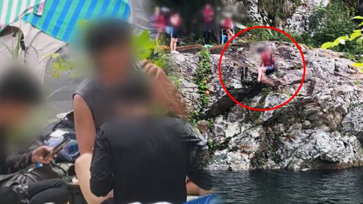 돗자리 펴놓고 맥주 마시는 남성, 바위로 올라가더니 몸을 던집니다.
