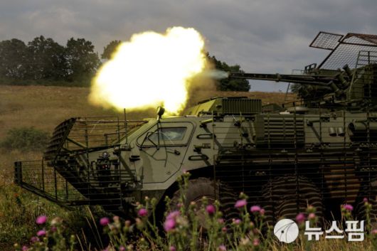 [하르키우 로이터=뉴스핌] 장일현 특파원 = 우크라이나군 제58 독립기계화 보병여단 소속 BTR-4 장갑차가 지난 11일(현지시간) 동북부 하르키우 지역에서 실시된 군사훈련에서 30mm ZTM-1 자동포를 쏘고 있다. 2025.08.12. ihjang67@newspim.com |