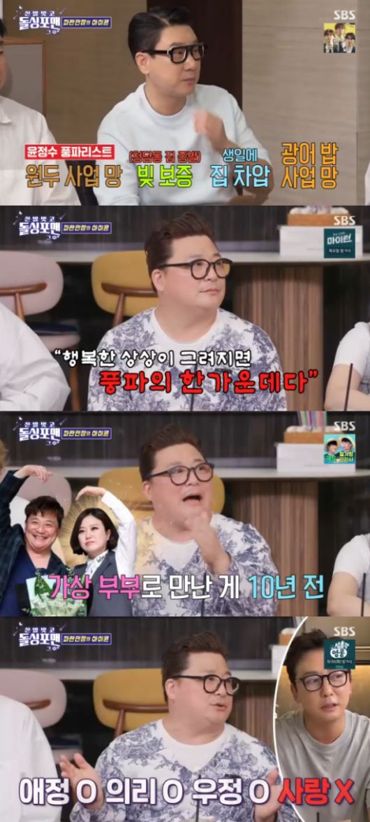 그리고 이날 지금까지 겪은 풍파들도 언급했다. 윤정수는 그동안 빚 보증으로 청담동 펜트하우스를 날리고, 생일에 집을 차압당해 쫓겨다는 등의 일화를 전했다.