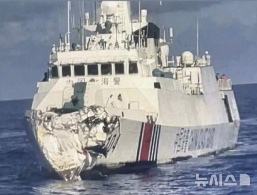 [서울=뉴시스] 강세훈 기자, 김준재 인턴기자 = 영유권 분쟁 해역인 남중국해에서 중국 함정 두 척이 필리핀 함정을 추격하다가 서로 충돌하는 사건이 발생했다. 이 여파로 중국 해경선은 앞 부분이 심각하게 파손됐다.