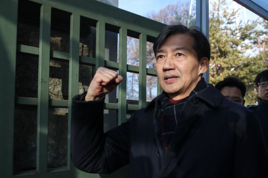 지난해 12월 16일 오전 조국 전 조국혁신당 대표가 경기 의왕시 서울구치소에 수감되기 전 주먹을 쥐어 보이고 있다. 의왕=뉴스1 |