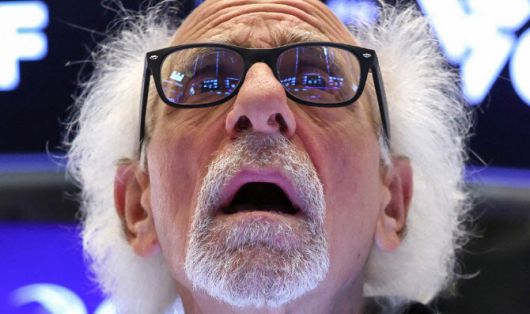 뉴욕증권거래소(NYSE)에서 개장 벨이 울리는 순간, 월가의 ‘아인슈타인’으로 불리는 피터 터크먼 트레이더가 전광판을 주시하고 있다. (사진=AFP) |