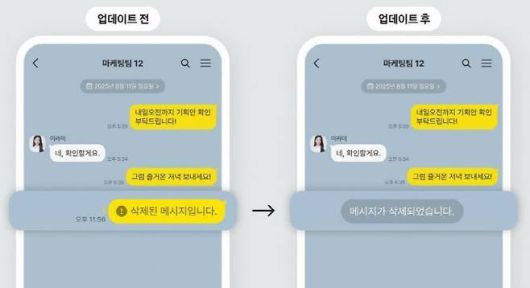 카카오는 메시지를 누가 삭제했는지 알 수 없도록 ‘삭제된 메시지’ 표기 방식을 변경했다.
