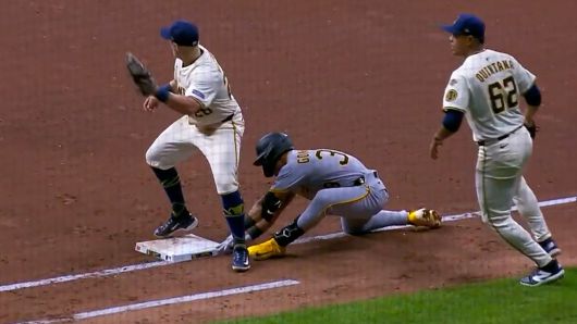 메이저리그에서 땅볼을 잡은 투수가 타자를 태그하려다 공을 놓치는 실수를 범했는데요.
