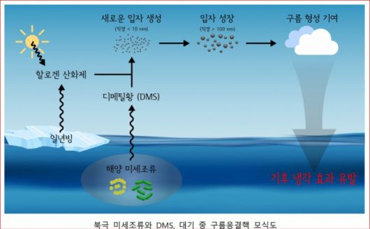 DMS는 북극 미세조류가 내뱉는 황 성분의 기체다. 형성된 지 1년 미만의 해빙인 일년빙에서 주로 방출되는 할로겐 산화제와 반응해 미세입자 생성에 기여하는 것으로 분석됐다.