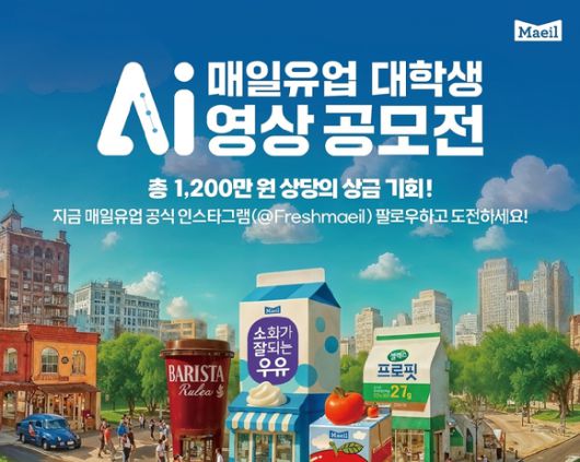 [아이뉴스24 송대성 기자] 매일유업은 대학생들을 대상으로 'AI 영상 공모전'을 개최한다고 13일 밝혔다.