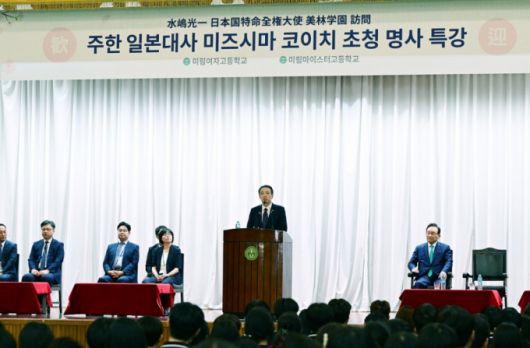 이날 강연에서 미즈시마 대사는 "한일 수교 60주년을 맞아 학생들과 좋은 시간을 가지게 돼 기쁘다"며 "고령화와 저출산 등 양국이 공통으로 안고 있는 과제에 젊은세대가 함께 지혜를 모아나갈 수 있을 것"이라고 말했다.